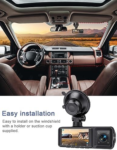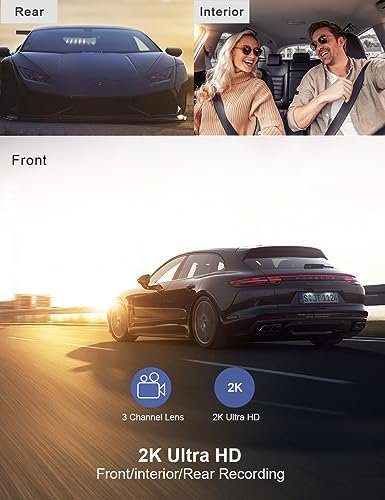 3 Channel Dash Cam Front and Rear Inside Dash Camera for Cars 2K+1080P+1080P