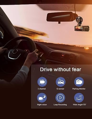 - Seamless loop Recording: 3 Channel dash cam with seamless loop recording will automatically overwrites the oldest footage with newest content when the card storage full. You will never worry about the memory card running out of space. Full 18 month technical support. If you need any support of this dash camera, just reach our customer service team, you will get 7*24 hours technical support. TIPS: It DOESN`T support WiFi & bluetooth.