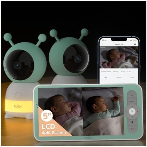 BOIFUN 5″ Split-Screen Baby Monitor With 2 Cameras, 2K WiFi Baby Dual Cameras