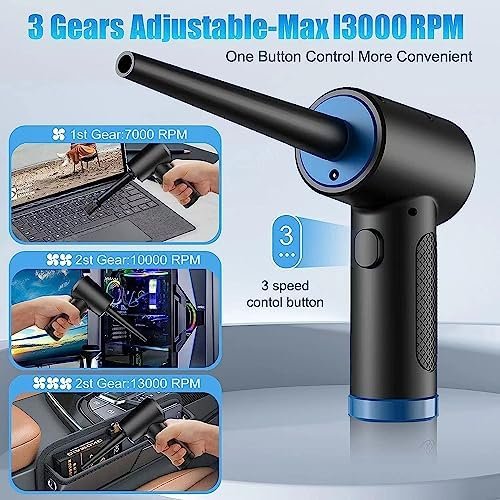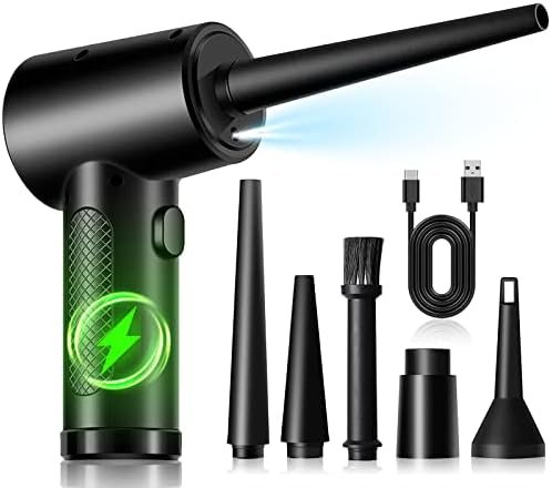 - LED Lights & Cordless Design: LED lights automatically illuminate when turned on electric air duster, allowing you to easily clean up dark corners, bringing great convenience to your cleaning. With its ergonomic shape and cordless design, it’s small, lightweight, comfortable to hold, and easy to carry around.