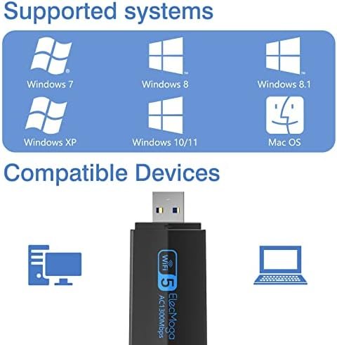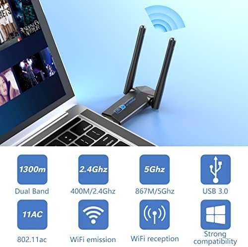 ElecMoga USB WiFi Adapter, 1300Mbps WiFi Dongle USB 3.0 Dual Band 5G/2.4G