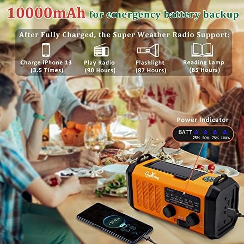 - HOME & OUTDOOR NECESSARY: The portable emergency weather radio for home outdoor survival is IPX4 waterproof and very compact for outdoor usage: weight 1LB & dimension is 6.2*3.1*2.3inch. Upgrade your emergency bag with Gustermmy best portable solar hand crank weather radio and phone charger, you won’t regret having it!