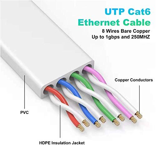 - PREMIUM MATERIAL: Our 50 feet ethernet cable is also made of 8 copper wires. The performance of UTP (Unshielded Twisted Pair) can be as high as 250 MHz and is very flexible. It can be tightly wound in a corner without affecting the speed. Crosstalk, noise and interference rarely occur