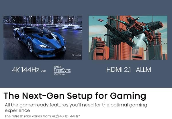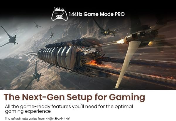 - Game Mode Pro – Equipped with AMD’s Freesync Premium Pro for a Variable Refresh Rate (VRR) up to 144Hz combined with Auto Low Latency Mode (ALLM), frame tearing and game controller lag is a thing of the past. Stay ahead of your opponents and win the game.