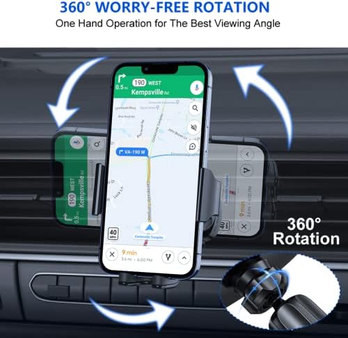 【EXTREME FLEXIBLE & ONE-HAND OPERATION】The 360°rotatable head gives you the best viewing angle and you could quickly switch it to any pose (portrait/ landscape) you want, make driving secure. The quick-release button and adjustable clamp arms make it very easy to clamp and remove your phone with single hand. Provide you with safer driving whether you are talking, navigating, listening to music or charging