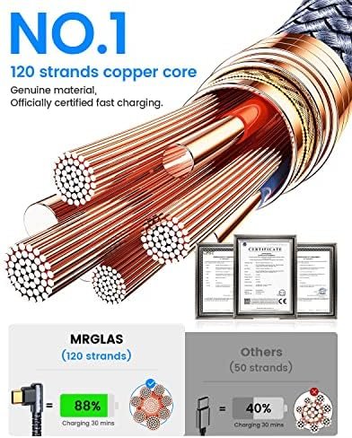 - [Certified 3.2a Dual chip Fast Charging] MRGLAS 3.2A USB C fast charging cable is 2x faster than other cables with 3.1A, MRGLAS usb c cable with gold-plated design avoids energy loss than other cables, and it has a transfer speed of up to 480Mbps. With a data transfer rate of up to 480Mbps between two devices, this USB-C connection can download 100 songs every 5 seconds.