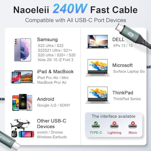 Naoeleii USB C to USB C Cable,100W Usbc to Usbc C Charger Cable Fast Charging