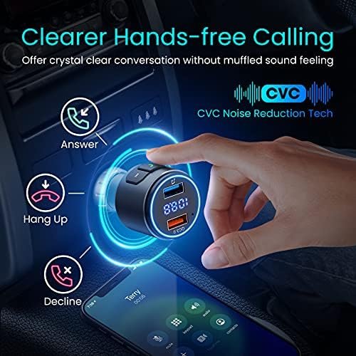 Octeso Upgraded V5.0 FM Bluetooth Transmitter Car, QC3.0 & LED Backlit Wireless