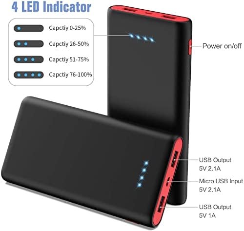 - Dual USB Charging & Fast Recharge — The Dual USB ports (2.1A+1A) to charge your two devices simultaneously, Fully recharges itself in 8~12 hours with 2.1A input charger, or 12-24 hours with 1A charger;
