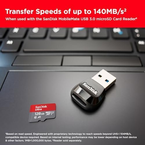 SanDisk 128GB Ultra microSDXC UHS-I Memory Card with Adapter – Up to 140MB/s