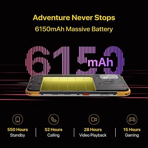 - 6150mAh LARGE BATTERY: The waterproof unlocked smartphone is equipped with 6150mAh battery. Whether it is watching movies, playing games, viewing navigation or making calls, UMIDIGI BISON X10 can provide you with the power you need. 550 hours standby,52 hours calling, 28 hours video playback or 15 hours gaming, it has been upgraded on the original basis.Adventurers no longer need to worry about running out of batteries when exploring the wild.
