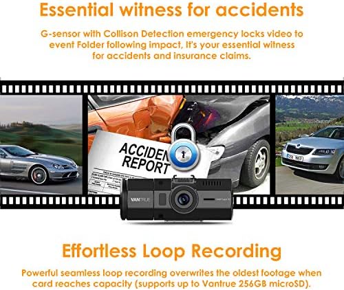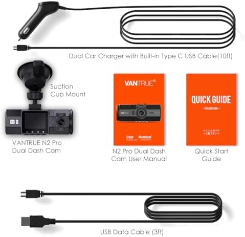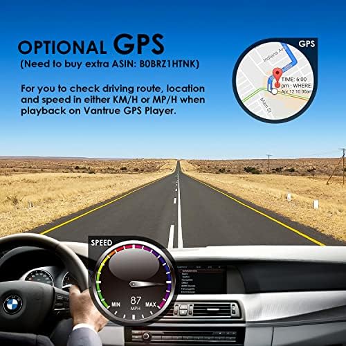 【Looping Recording & 18-month Warranty】Seamless Loop Recording overwrites the oldest footage with the newest when the SD card is filled to capacity. To make N2 Pro dash cam operate steadily, we recommend using Vantrue original micro SD card. (Buy Separately, ASIN: B081M5JR2C) Connecting optional GPS (Buy Separately, ASIN: B0BRZ1HTNK) to track the driving route, location and speed. It comes with an extendable 18-month Warranty, e-mail response within 24h and 100% Satisfaction Guarantee.