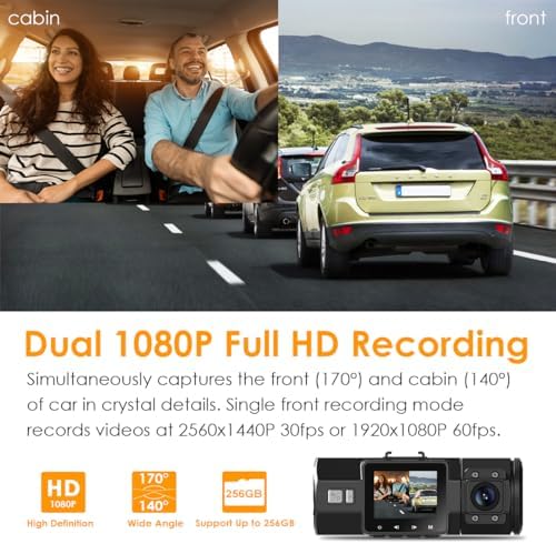 【Front and Inside Dual 1080P Dash Cam】The dual 1080P dash cam simultaneously captures the road front (170°) and inside the cabin (140°) in crystal details at dual 1920x1080P 30fps. It’s your superior choice for Lyft, Taxi, Rideshare, and must-have for family road trip!