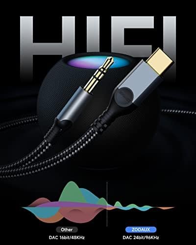 ZOOAUX USB C to 3.5mm Audio Aux Jack Cable[4ft], Type C Adapter to 3.5mm